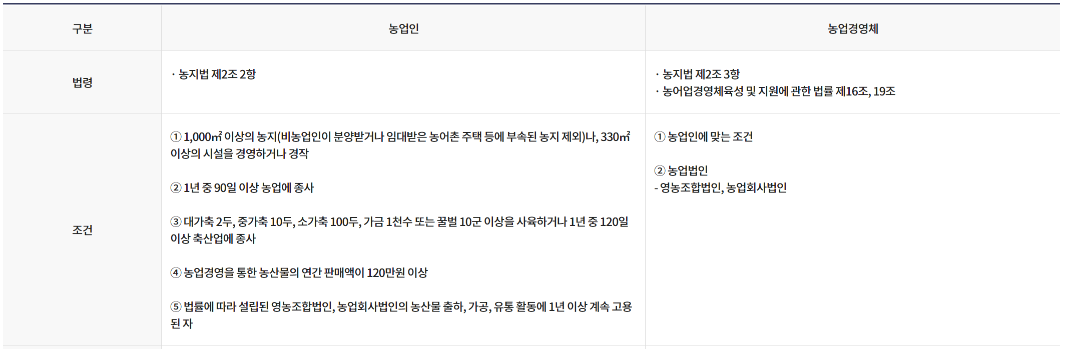 농업경영체 등록 조건