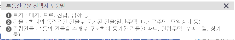 부동산구분을 정확하게 선택해야 조회가 가능합니다.